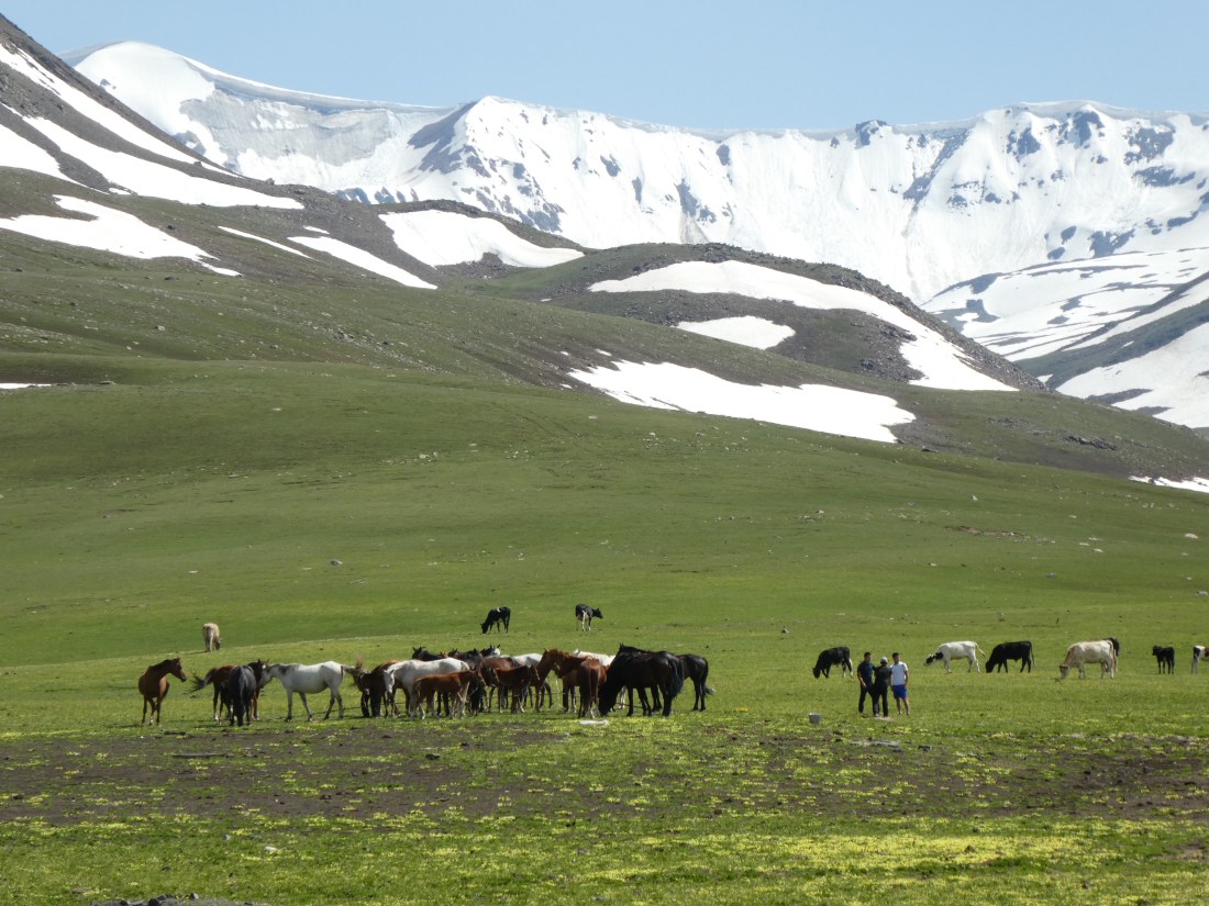 We had stopped for a coffee and this guy arrived sharing coffee a biscuit , he was the local farmer and very proud of his crops and cattle which he showed us .He was wearing the traditional Kyrgyzstan hat which he explained is to symbolise the many snow capped mountains which surround the area.