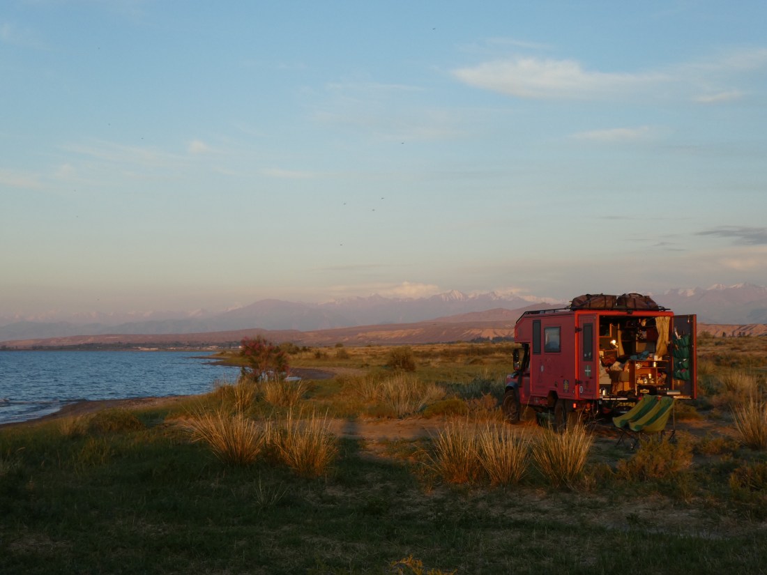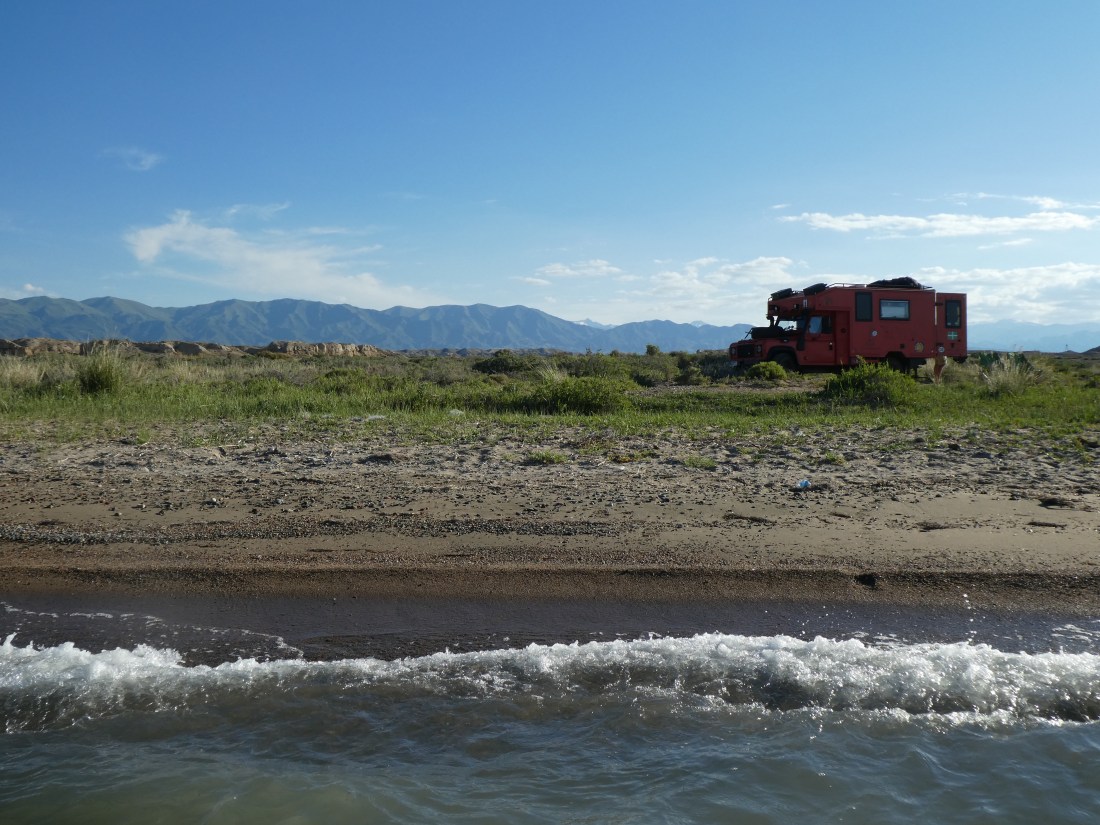 Another wild campsite this time beside Lake Issyk-Kul which never freezes in winter even at minus 30 degs as it’s heated by hot springs and was great for swimming in