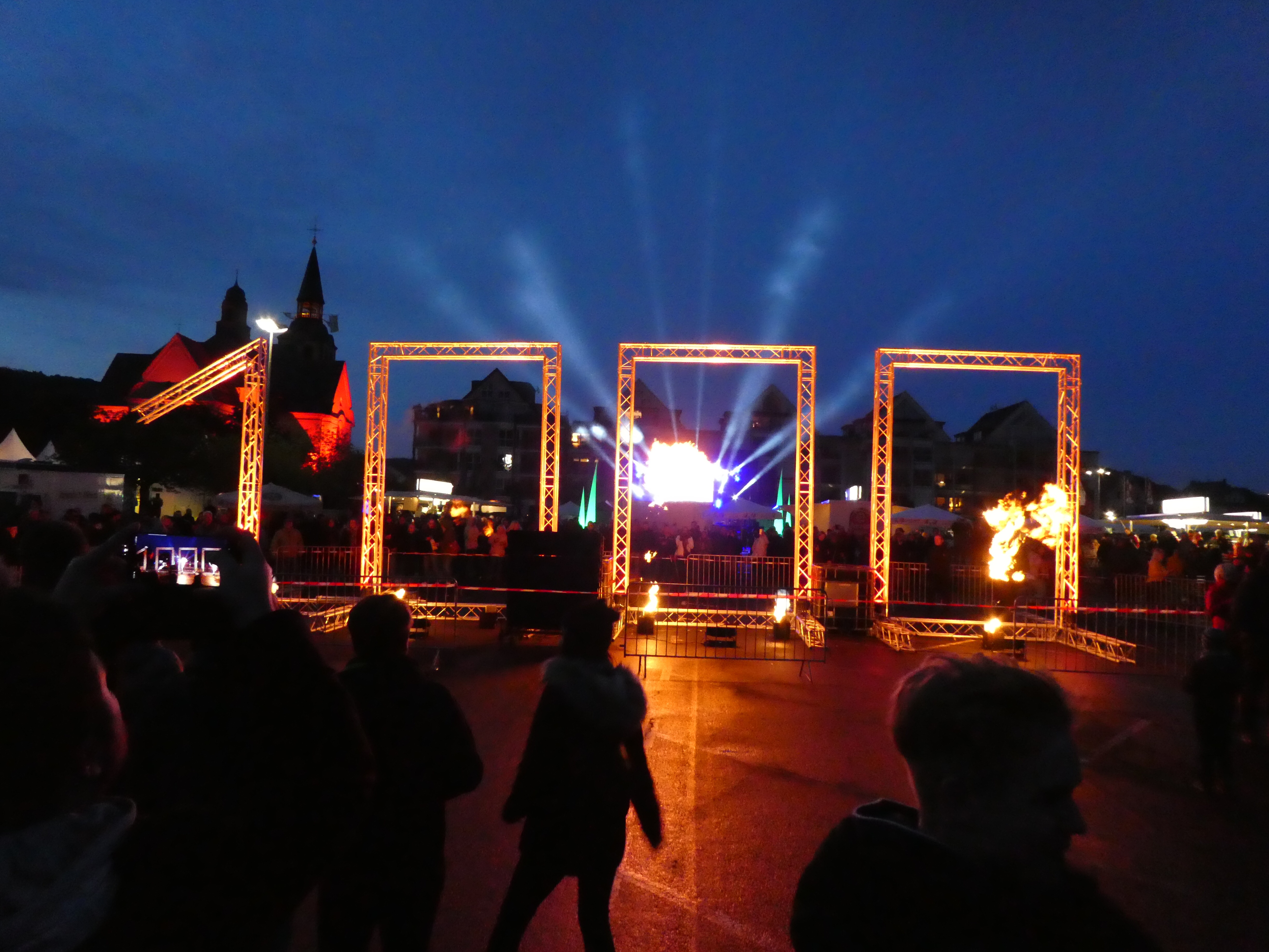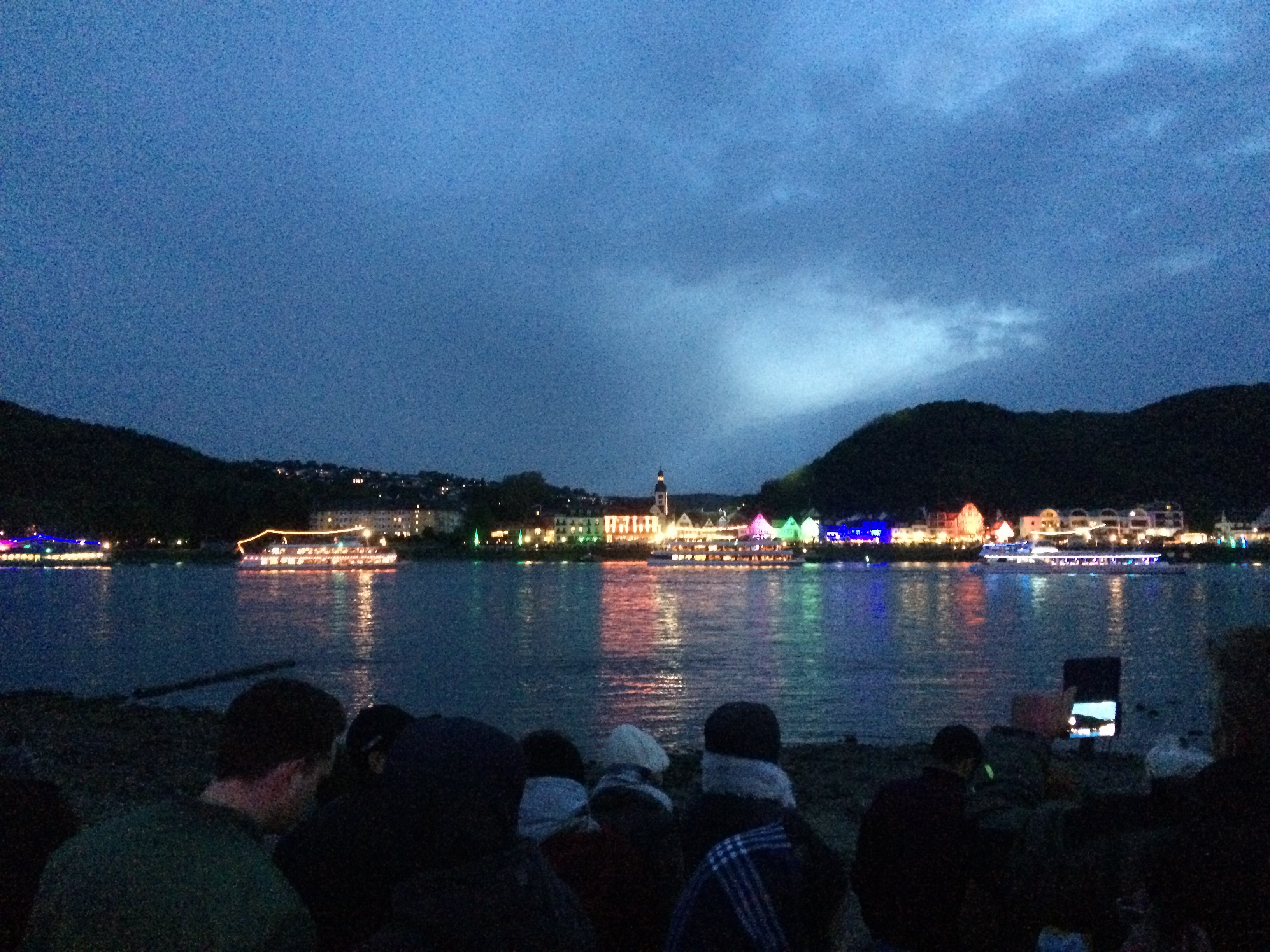 Parked up in Bad Honningen right beside the Rhine. It just happened to be a celebration weekend of 1000 years so we got stuck in and enjoyed the festival culminating in a flotilla of 50 cruise boats all lit up and fireworks !