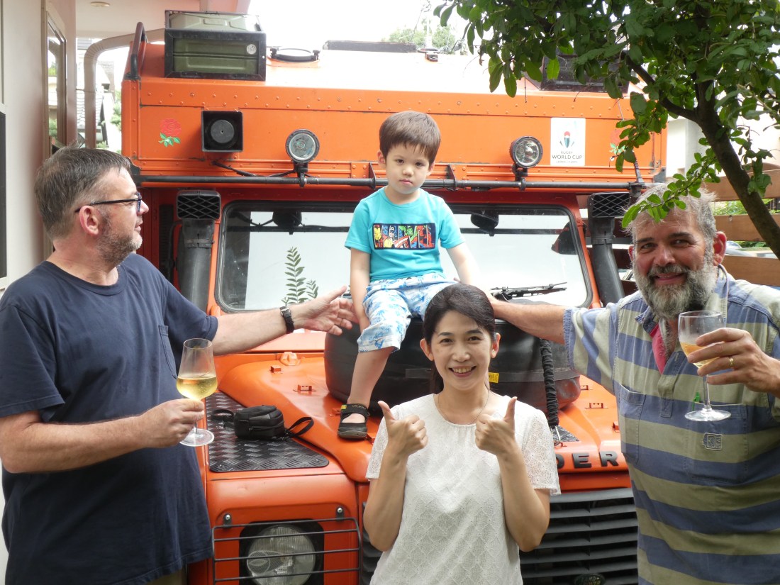Exactly 27,835km from Home our Tokyo hosts, my brother Simon, his lovely wife Tomoko and my nephew Kai who I’ve never met before welcomed us with a bottle of champers and a tight parking spot with a couple of inch’s spare Amber fitted in perfectly if a little bit of a surprise for the neighbors!